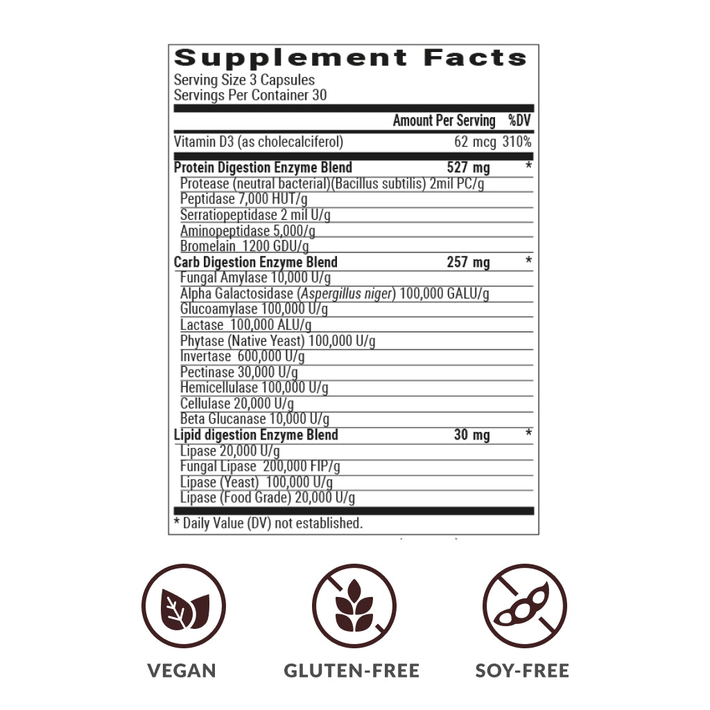 Enzimas especializadas para digerir gluten, reducir molestias y mejorar digestión.